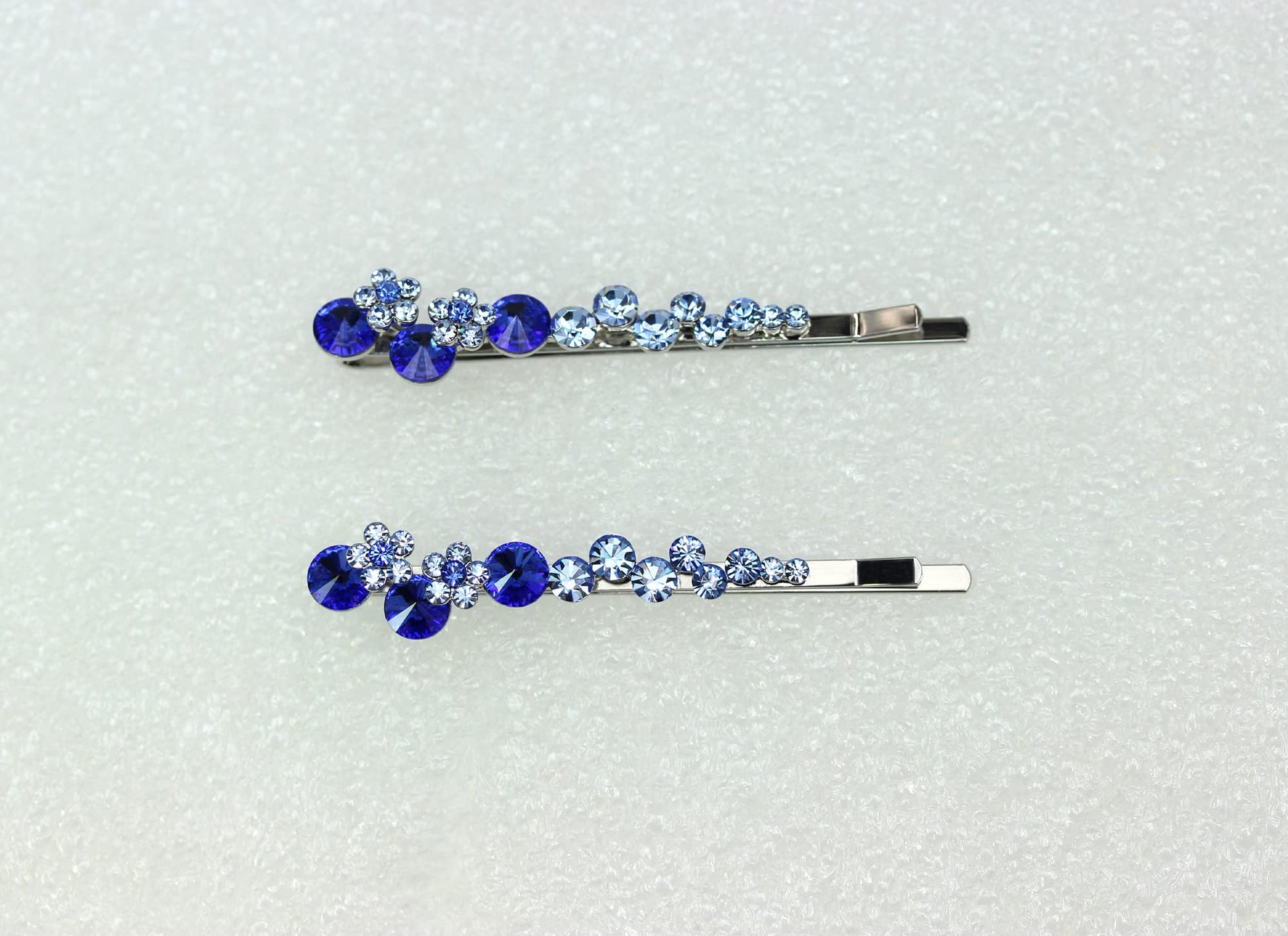 Faship A Pair Of Blue Premium Rhinestone Crystal Floral Hair Clips Pins 2 Pcs