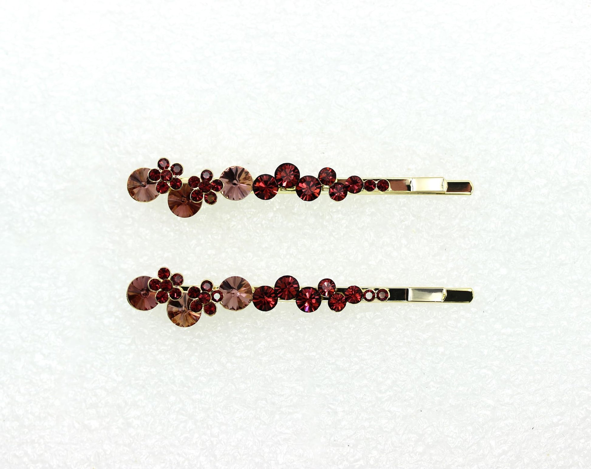 Faship A Pair Of Burgundy Premium Rhinestone Crystal Floral Hair Clips Pins 2 Pcs