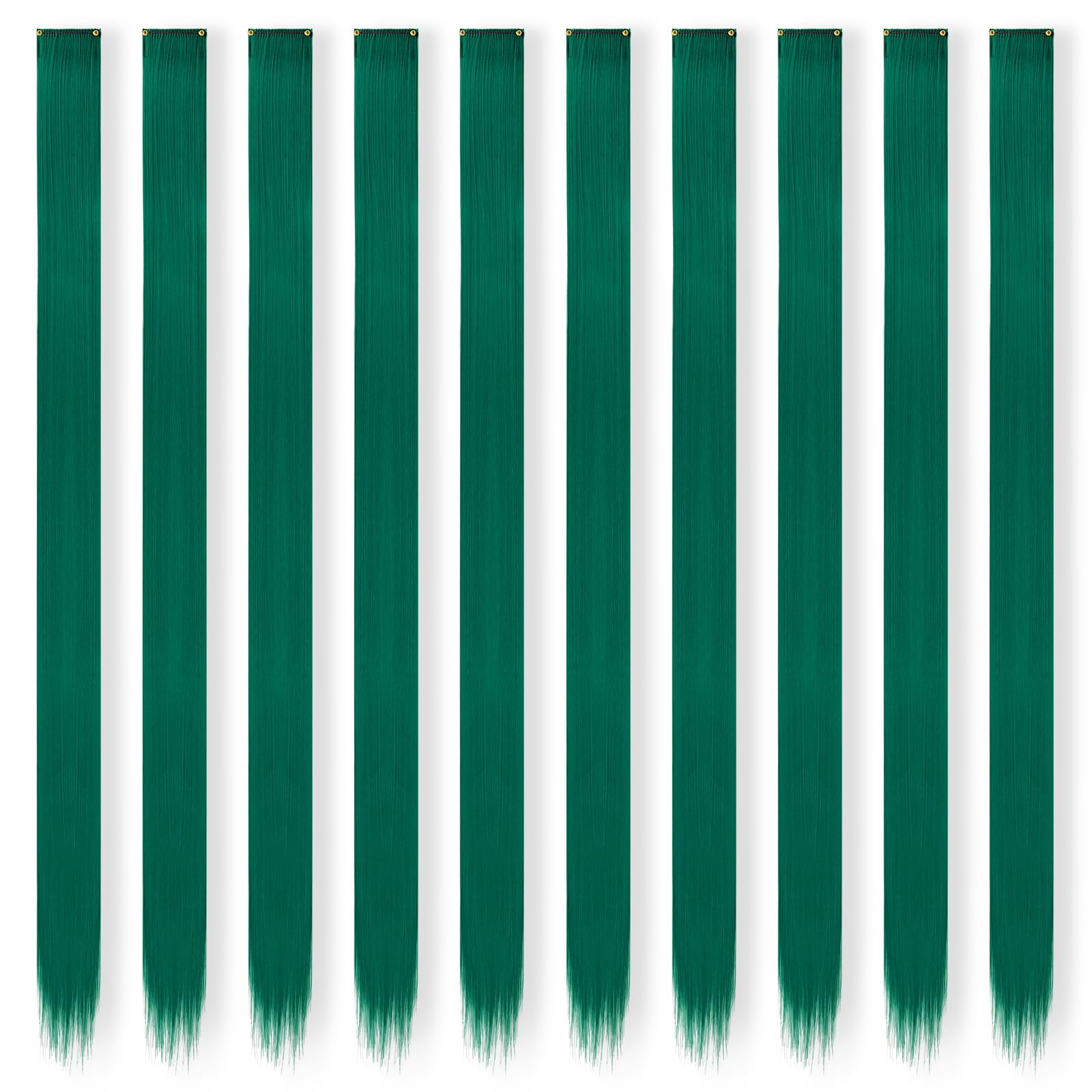 FESHFEN Colored Clip in Hair Extensions - 10 PCS Polaris Dark Green Highlighted Hair Piece Straight Synthetic Clip in Hairpieces for Women 22 inch