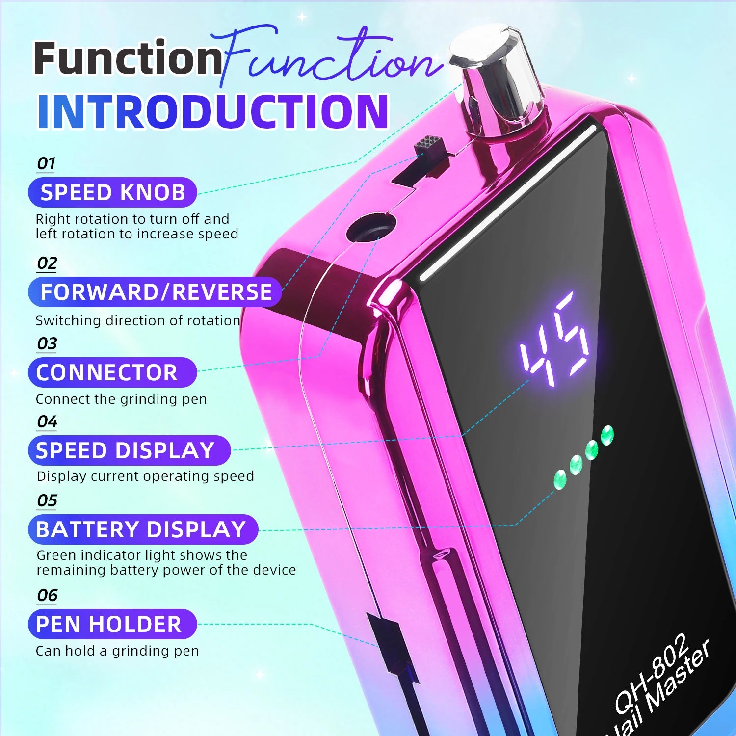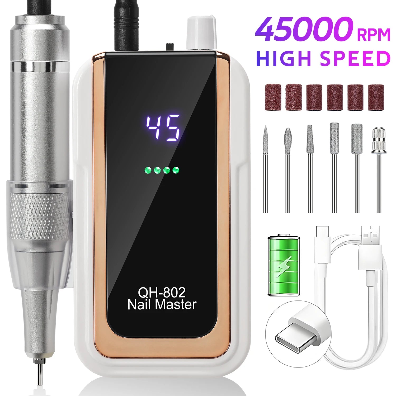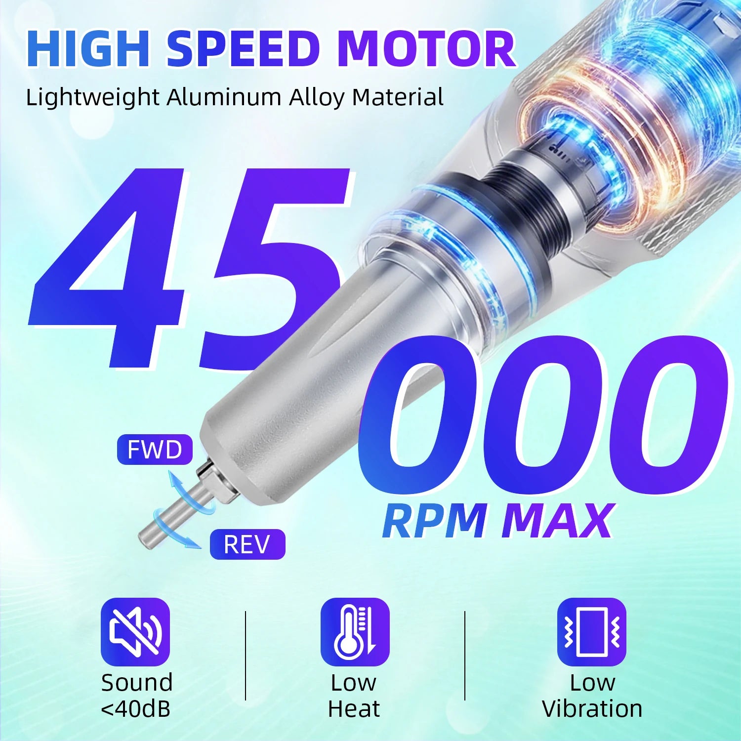 The Professional 45000RPM Portable Nail Drill offers precise, high-speed performance ideal for both salon and at-home use. Its powerful motor delivers up to 45,000 rotations per minute, ensuring efficient filing, shaping, and polishing of nails. Designed for portability, it is lightweight and easy to handle, making it perfect for professionals on the go. This nail drill provides smooth, consistent operation to enhance your nail care routine with expert-level results every time.