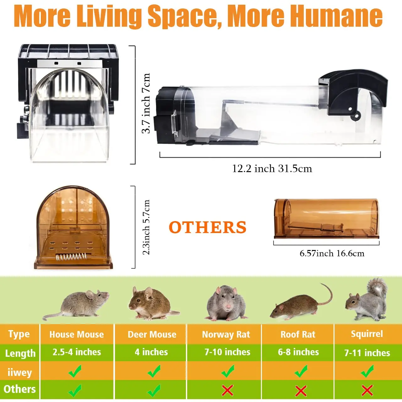 Safe Firm Humane Reusable Plastic Rodents Trap Household Mouse Catcher Smart Self-locking Mousetrap for Indoor Outdoor Garden