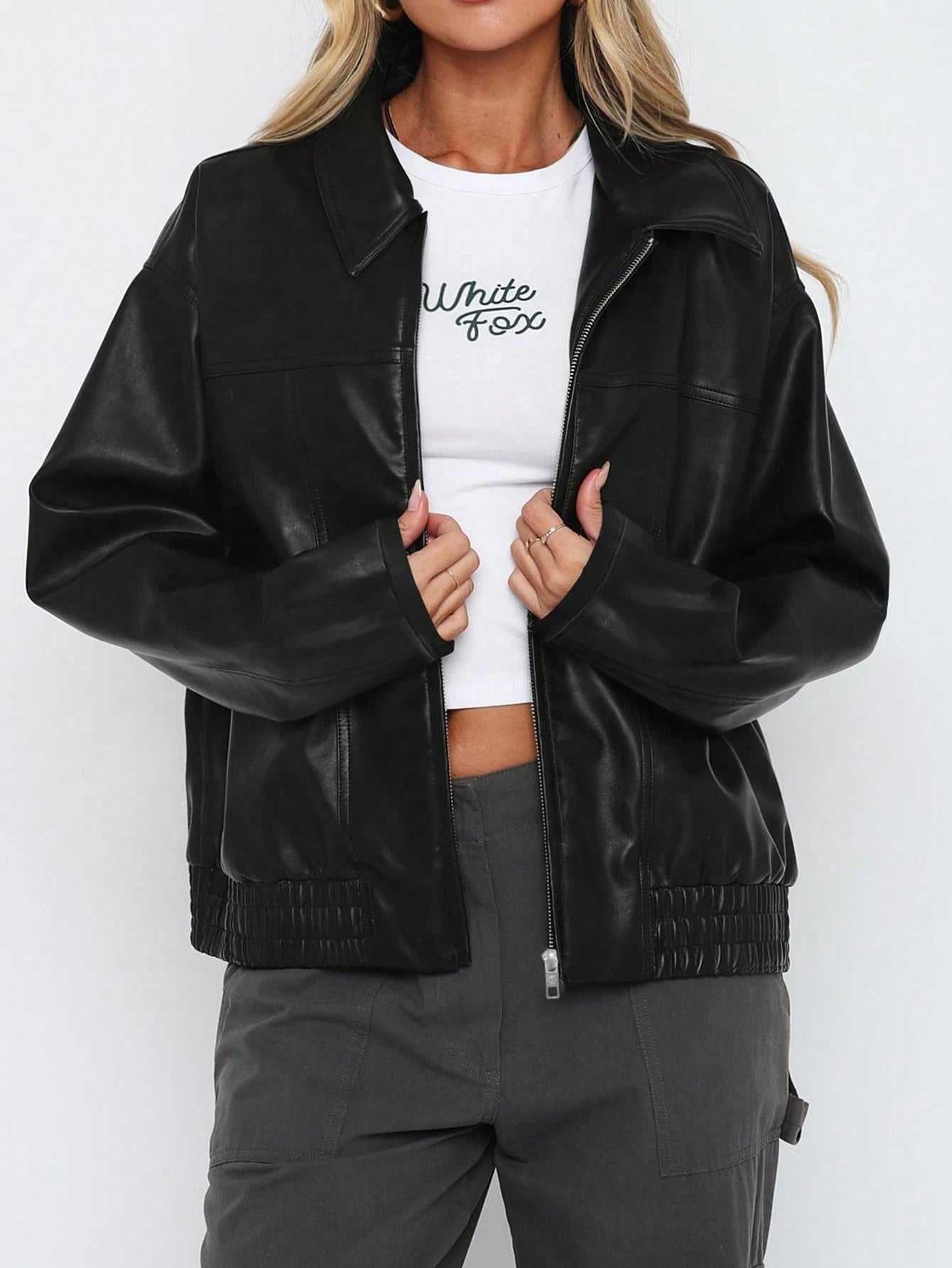 This women’s casual black PU jacket combines contemporary style with practical durability. Crafted from high-quality polyurethane, it offers a sleek, leather-like appearance that is both lightweight and water-resistant. Designed for everyday wear, its versatile black color pairs effortlessly with various outfits, making it an ideal choice for transitional weather. The jacket's tailored fit ensures comfort while maintaining a refined silhouette, perfect for adding an edge to your casual wardrobe.